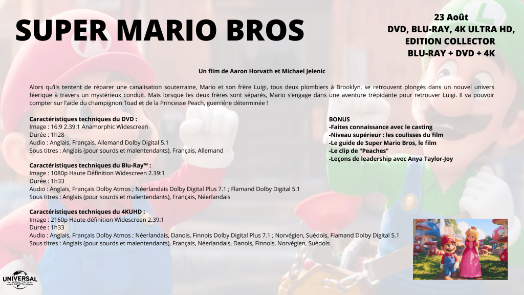 Super Mario. Bros Le film, en DVD/BLU-Ray le 23 août prochain.