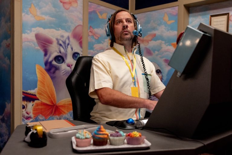 Dès l’écriture, il y avait tous ces éléments : la trappe entre les deux bureaux, les têtes de chatons… Nous avons tourné dans les décors d’une ancien accélérateur de particules où il y a des bureaux superposés façon Alcatraz. Il y a également une pièce centrale, tout en haut, où ont été tournées des séquences de la série, qui est en réalité un ancien noyau nucléaire. Nous nous sommes appuyés là-dessus pour créer l’environnement des auditeurs et surveilleurs de rire, que ce soit la cafétéria ou le bureau. Je suis très fier du résultat de direction artistique.