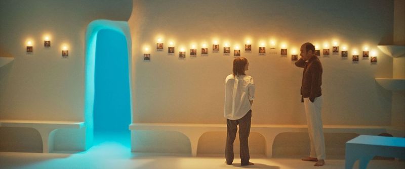 R.B : Nous ne voulions pas un lieu trop réaliste et que ça raconte leur intérieur mental. Petit à petit, le chef décorateur est venu en s’inspirant d’une plasticienne, et voulait ce côté rond, sans angle, le côté blanc et plâtre. Il nous fallait un endroit où, lorsqu’un des deux personnages a couché avec un de ses ex, ils puissent cocher, voir que c’est fait et donc un rapport visuellement que nous devions révéler avec des ampoules. C’est comme un tableau à remplir, un objet avec lequel les acteurs auraient un rapport organique, qu’on les voit écrire et qu’il y ait aussi un rapport comique à ce lieu.