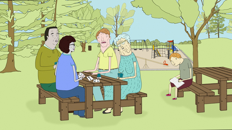 Il y a plein de petits éléments amusants dans la série dont le voisin qui balance les sacs d’excréments de son chien sur l’arbre d’un autre voisin, le chat-tronc et l’homme amoureux de sa tondeuse. De quelle façon avez-vous eu l’idée de ces personnages ?