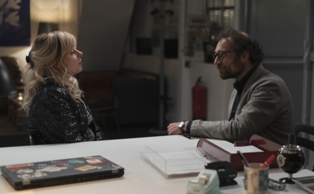 Les difficultés sur « D’argent et de sang » sont liées à un matériau à la fois spectaculaire mais aussi à des dimensions financières, juridiques, ainsi qu’une chronologie complexe. Ce sont alors des enjeux de compression, de simplification, d’efficacité, tout en essayant de conserver la saveur du matériau de base. Là, ce qui était particulier, c’est que le sujet premier n’est pas le Bataclan, c’est cette femme, cette mythomane. Dans le livre, on sentait, même à travers des textos, qu’on connaissait Christelle, qu’on l’avait déjà croisé, je sentais une vitalité chez ce personnage, au sein de cet univers morbide, qui m’a donné confiance. Je me suis dit que je pourrais en faire quelque chose. L’enjeu était donc retranscrire cette sensation, de créer une « héroïne » émotionnellement complexe et banal, une madame tout le monde, qui passe partout au point de pouvoir berner tout le monde.