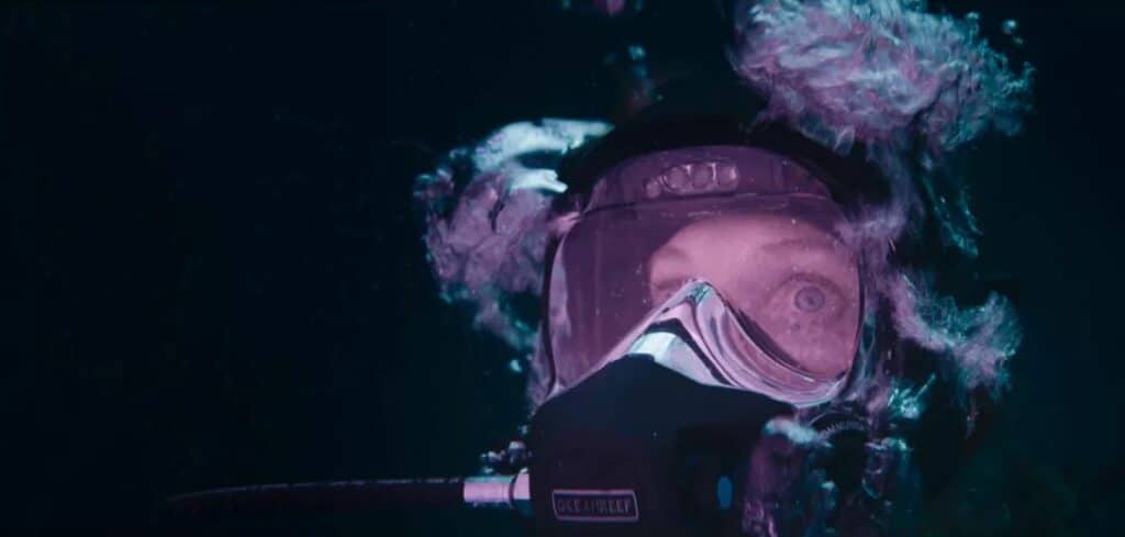 Sous l’eau, nous n’avions pas de communication entre David et moi ou David et la surface. Ça passait par le chef opérateur. David faisait des signes à la caméra et à moi aussi. Pour les biens de la série, j’avais un peu appris le langage des signes pour fluidifier nos communications. Il m’expliquait à la surface ce que nous allions faire avant de tourner, bien entendu. Une fois sous l’eau, on y va. Puis, étant donné que nous avons tourné toutes ces scènes à la fin du tournage, nous nous comprenions. Nous avions eu le temps de développer une relation de travail.