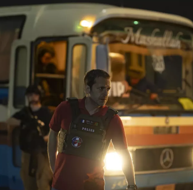 C’est une description très juste. Il est marqué par tout ce qui arrive et il doit garder le contrôle. Mon objectif était le suivant : quoi qu’il ressente, quoi qu’il pense, il doit donner l’impression d’être en contrôle. Toujours avoir un coup d’avance. Même si intérieurement, il est paniqué. Pour des scènes de haute-intensité émotionnelle ou comme celles des négociations, je devais avoir tout ça en tête. Car exposer ses émotions, les dévoiler, ça serait de l’exhibitionnisme devant ces gens qui vivent cette situation catastrophique. La leçon de l’histoire c’est que, bien que ce soit une vraie réussite diplomatique française – ils ont fait tout ce qu’ils ont pu et même mieux – ça reste un échec. Bien qu’il ait sauvé autant de monde que possible, ils n’ont pas pu sauver tout le monde. Ils garderont forcément le souvenir de tous ces gens laissés derrière eux.