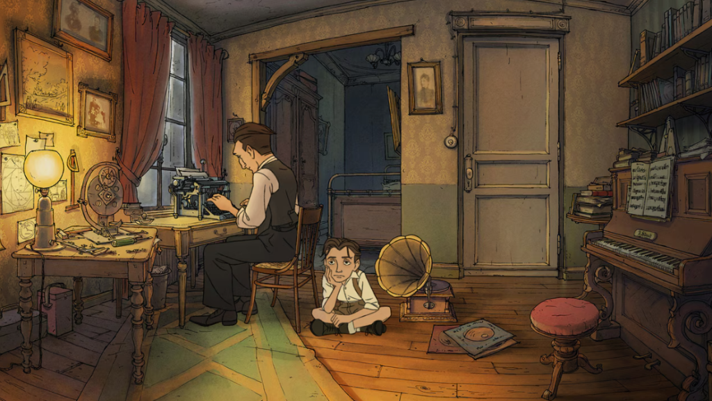 C’est lui, par exemple, qui lui fait rencontrer un ami à Paris, un ami qui va beaucoup l’aider dans sa nouvelle vie. Il y a même une scène où il nettoie les chaussures de son lui adulte dans la ville, ou encore celle où il le pousse à aller en Angleterre voir un film parlant – un film qui changera sa vie.