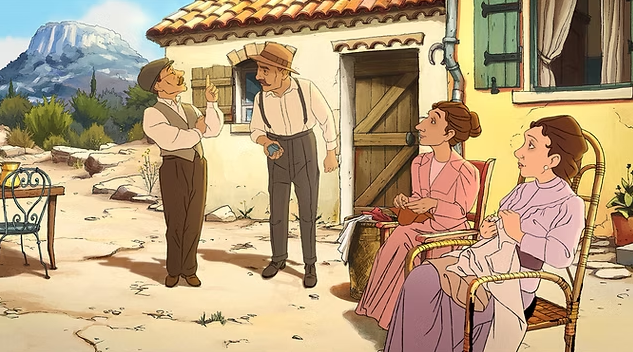 Cette Bonne, c’est moi qui l’avais faite au départ. Et pour le long-métrage, j’avais en tête une actrice pas très connue, qui était la muse de Luis Buñuel : Muni (Marguerite Dupuy). Elle jouait souvent des rôles de bonnes dans ses films, avec une manière de jouer très étrange. On avait l’impression qu’elle lisait son texte. Et je me suis dit que ce serait drôle de lui rendre hommage. Ce sont des références comme celle-là qu’on a distillées dans le film. Et pour l’animation de ce personnage, c’était très drôle aussi : je n’avais aucune photo, aucune archive de la vraie bonne de Marcel Pagnol. Et quand Nicolas Pagnol a vu le dessin, il m’a dit : « C’est elle ! Une petite bonne femme toute ronde, toute brune. » Je l’avais dessinée presque à l’identique.