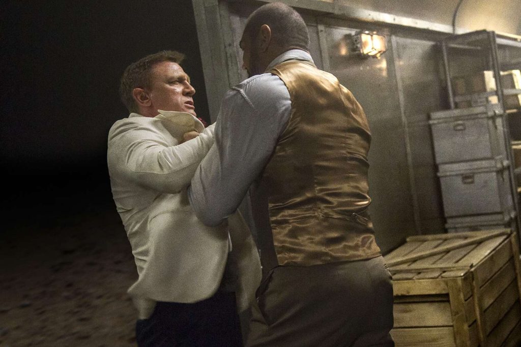 Bien sûr. J’ai joué là-dessus. On voit que Daniel essaie de porter des coups, mais qu’au début ça n’a que peu d’impact. Alors, il utilise tout ce qu’il peut trouver autour de lui. De mon côté, je mets en avant la force brute de Bautista : on peut ainsi briser des morceaux de décor, des toilettes, une table… et créer des scènes spectaculaires où Daniel Craig est littéralement projeté contre ces éléments.