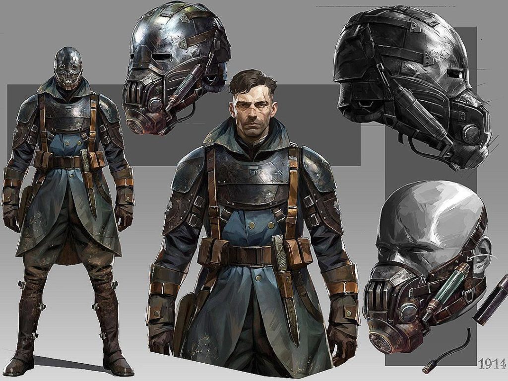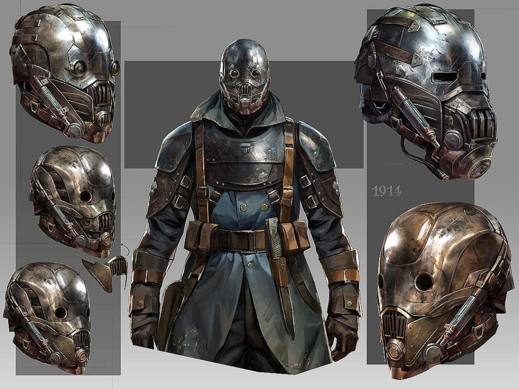 T.P : Le casque, c’est la première chose sur laquelle nous avons travaillé. Dès que nous avons eu les scénarios, je me suis plongé dessus. Pour moi, dans une série ou un film d’époque, le plus attendu, ce sont les costumes. Nous avons donc fait énormément de recherches. Avec mon frère, nous avons commencé à dessiner des croquis, aidés par Cédric Peyravernay, un illustrateur sublime. Et en dessinant, nous avons eu l’idée d’incorporer le sérum directement dans les casques, avec des petites capsules. Ce n’était pas dans le scénario au départ, mais ça nous a semblé évident. Évidemment, ce n’était pas simple.