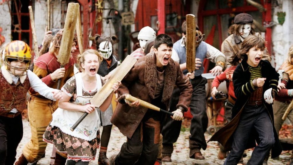 Ce qui m’a vraiment impressionné en arrivant sur ce tournage, c’était le décor et tous les accessoires qu’ils avaient créés. C’est un film qui se veut un peu bricolé, avec plein de petits gadgets partout, des objets d’époque… et en même temps, ce n’est pas une vraie époque : c’est une temporalité fantasmée par le réalisateur et l’auteur. Ce village, c’est un peu le rêve inavoué de tous les enfants : se lever un matin et qu’il n’y ait plus de parents, nulle part, et pouvoir prendre les rênes de sa propre vie. Et puis, ils s’aperçoivent que ce rêve n’est pas viable : comment on fait pour s’alimenter ? Comment on fait pour être responsable ? Et politiquement, ça part complètement en vrille.
